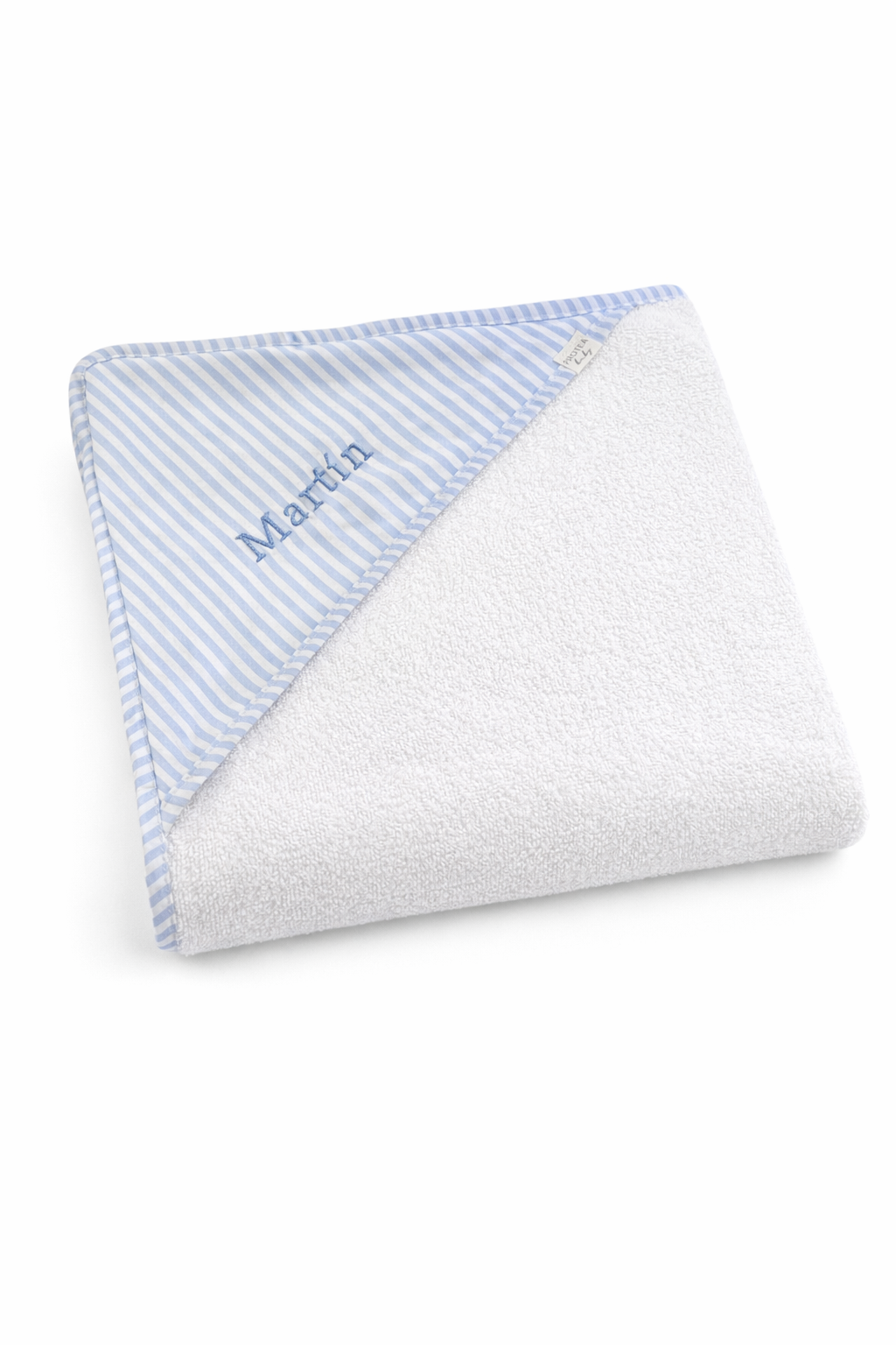 Capa de baño en tejido de color blanco, 100% algodón con la capucha en tejido estampado.