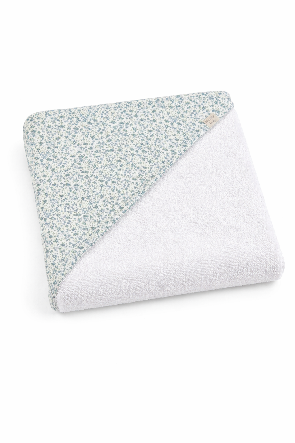 Capa de baño en tejido de color blanco, 100% algodón con la capucha en tejido estampado.
