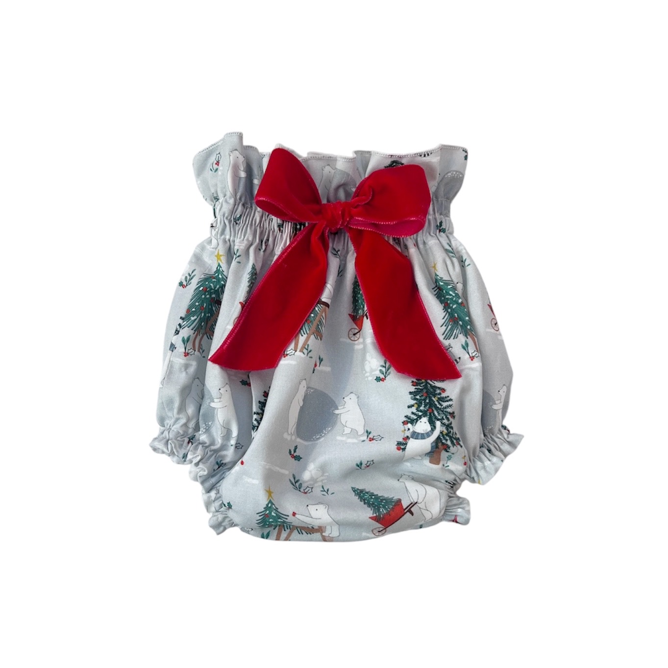 Culotte en tejido Oso polar con lazo de terciopelo opcional. Modelo de tiro alto con gomas en cintura y piernas, va todo forrado para evitar rozaduras.