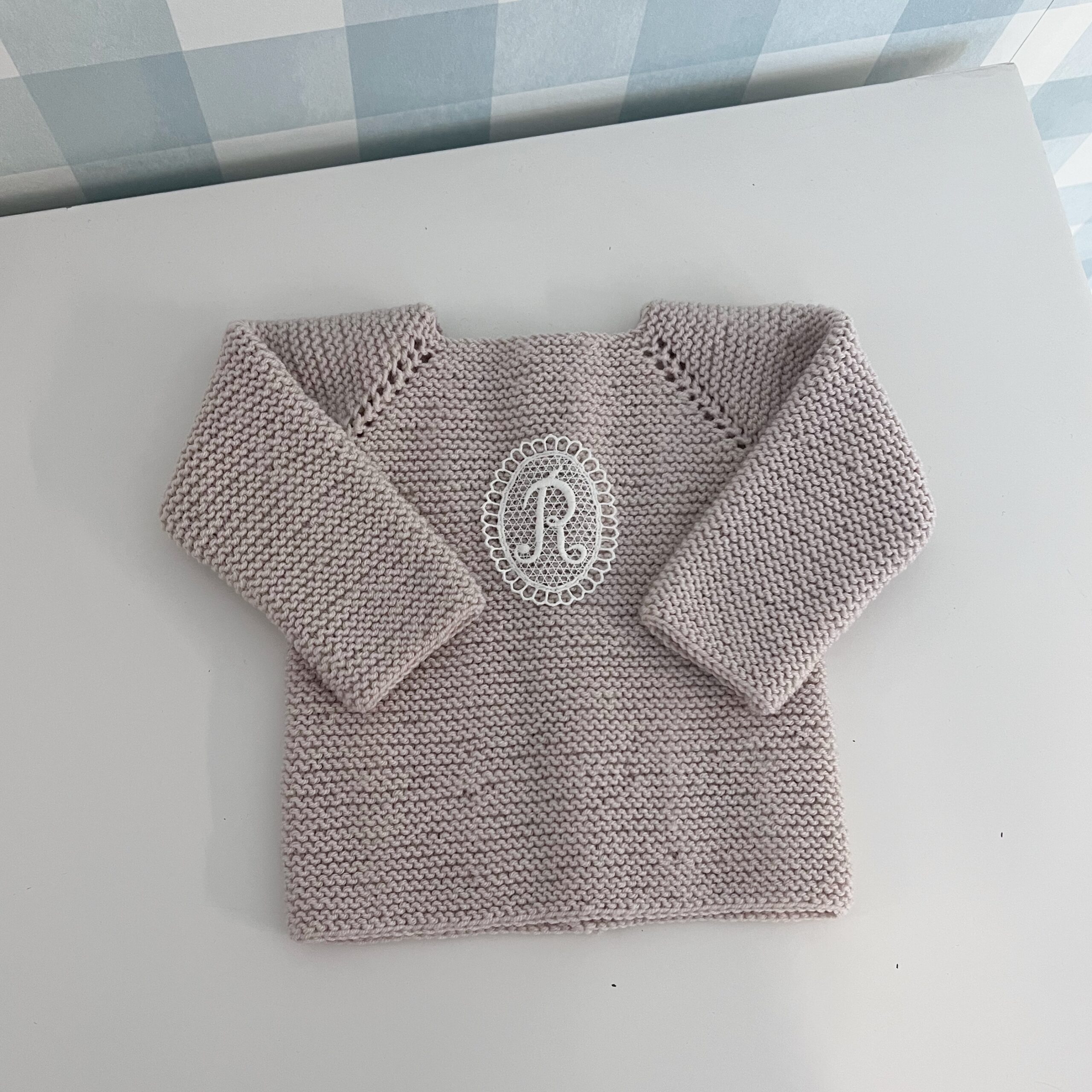 Jersey tejido a mano en lana 100% merino. Personalizable con la inicial de tu peque