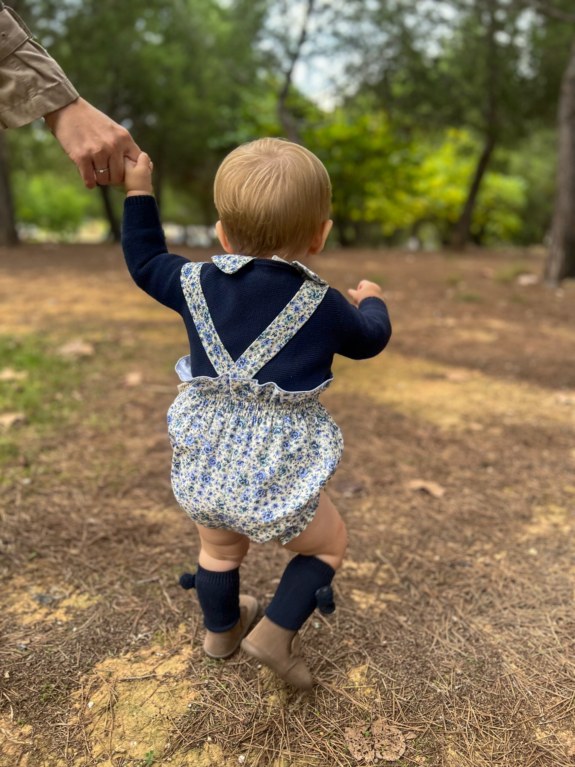 Este modelo lleva botones de madera, los tirantes ajustables con el botón, de tal manera que puedas aprovechar más la prenda y apertura para facilitar el cambio de pañal.