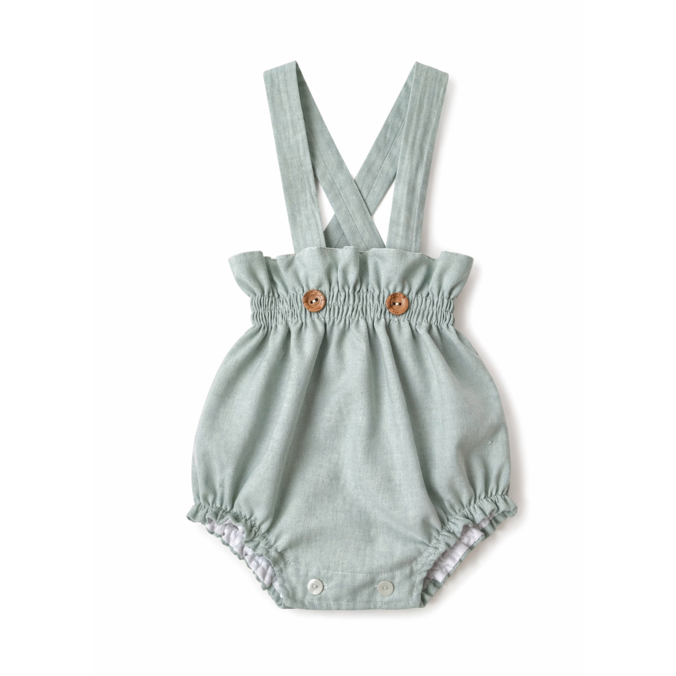 Ranita tirantes en tejido Siros lino verde empolvado, un modelo totalmente unisex.